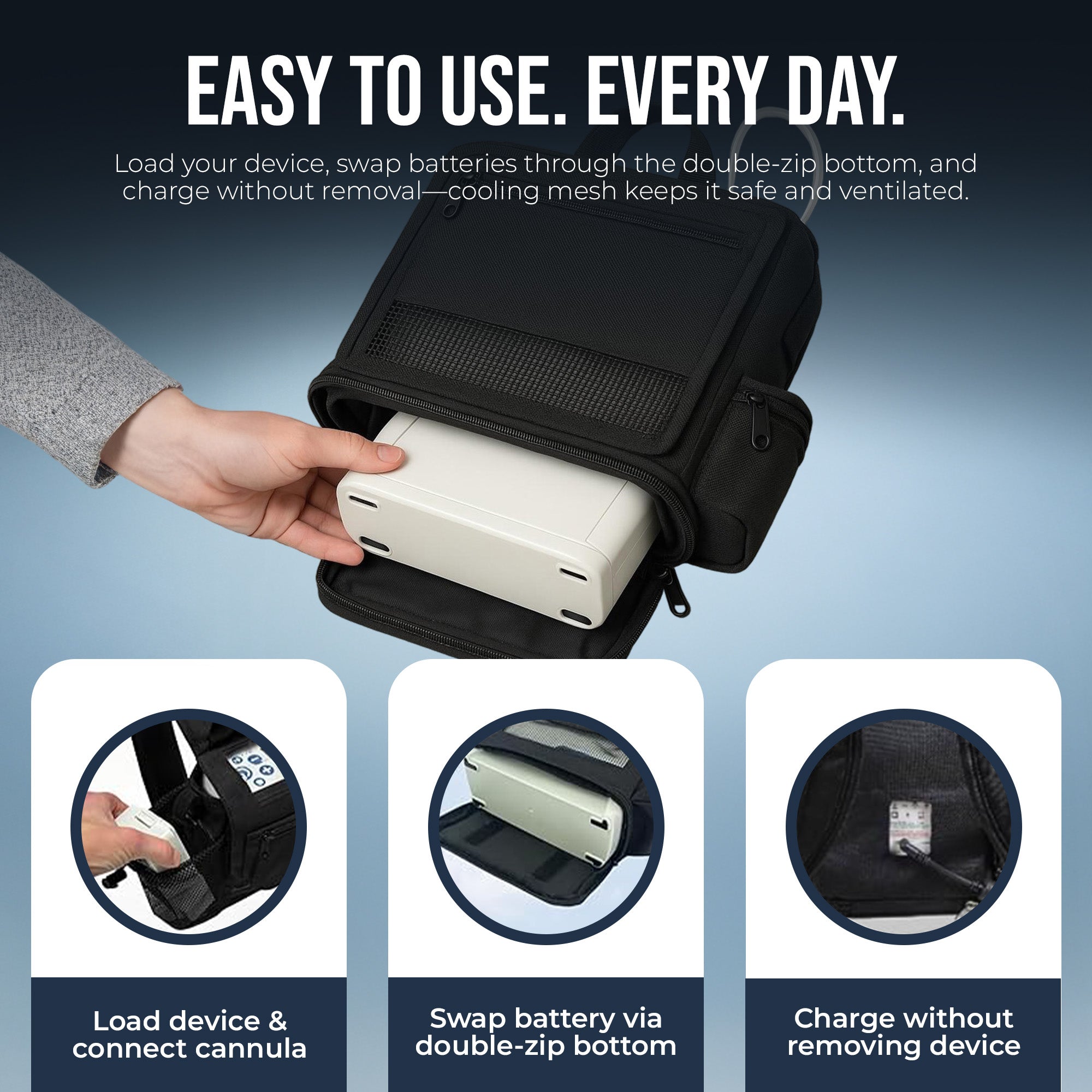 Inogen Rove 6 Ultra Lightweight Backpack with zippered bottom, mesh panels and pockets for Inogen Accessories in Black