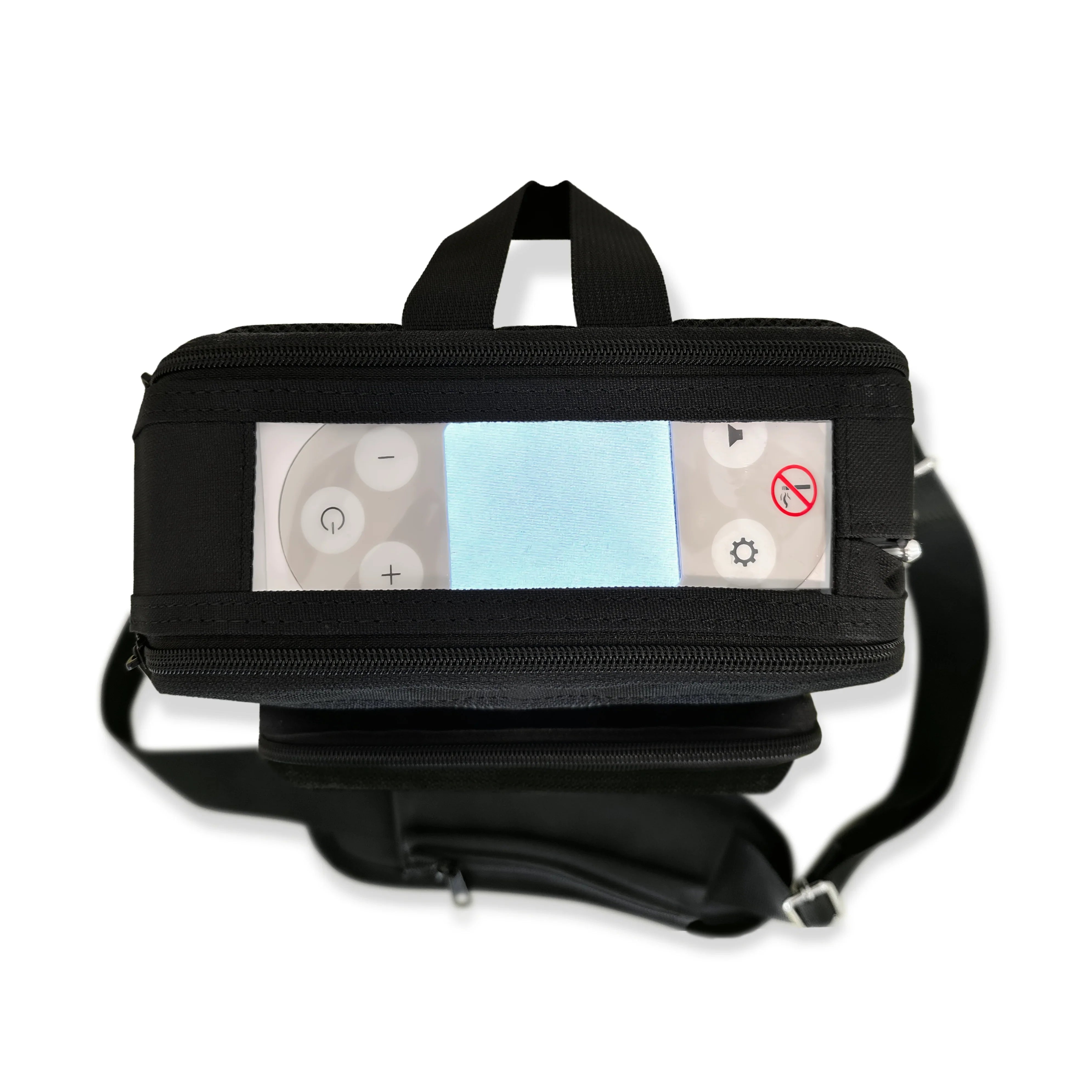 This carrying bag is custom-designed to fit only the Rhythm P2 portable oxygen concentrator. A dedicated rear plug opening allows you to charge your unit while it remains safely inside the bag, making it ideal for long days or travel.