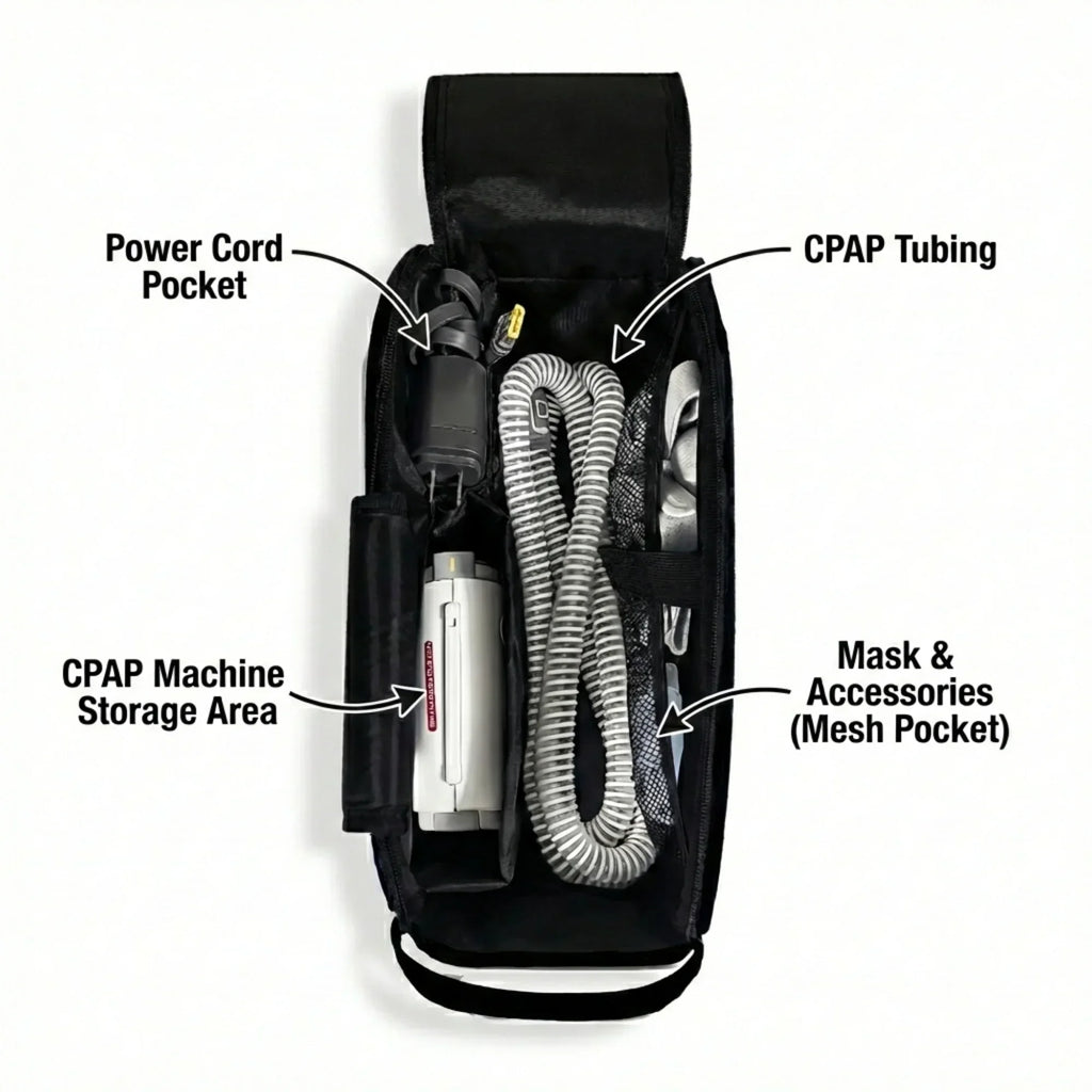 Your CPAP is stored in its own separate compartment located at the bottom portion of your backpack. Padding surrounds the unit so you know your CPAP is safe & protected. Easily unzip and take out if needed.